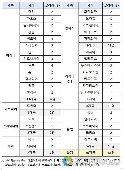 ‘해외 청소년 한국어교육 연수’는 각국의 정규 학교에서 한국어를 배우는 학생들이 한국에 대한 이해를 넓히고 한국어 학습 동기를 고취할 수 있도록 2019년부터 매년 운영되는 과정이다. 올해는 르완다·벨라루스·튀르키예 등 처음 참여하는 국가들을 포함해 총 36개국에서 인솔교사 포함 95명이 참석했다.