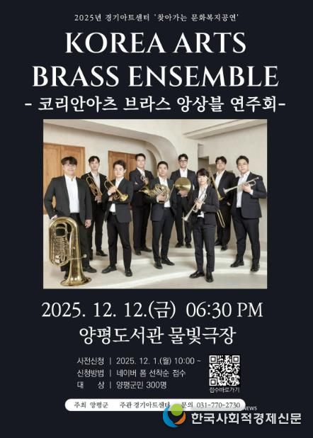 한국사회적경제신문 기자 | 양평군은 지역 주민에게 품격 있는 문화 향유 기회를 제공하고자 오는 12월 12일 양평도서관 물빛극장에서 ‘연말 맞이 찾아가는 문화복지 공연’을 개최한다고 밝혔다.
