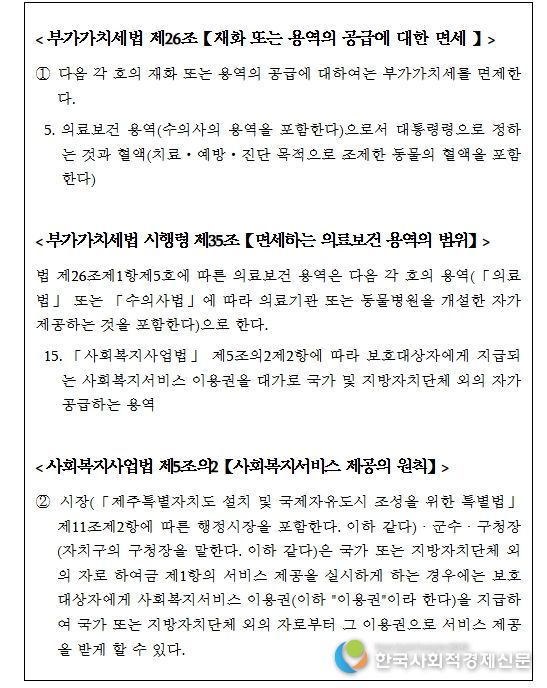 그동안 업계에서는 바우처 방식의 산모‧신생아 돌봄 서비스는 바우처를 대가로 산모에게 공급하는 용역이며, 해당 용역은 부가가치세 면세대상 용역*에 해당되므로 본인부담금 부분도 면세로 보아야 한다고 주장하며, 현장에서 과‧면세 적용 여부로 혼란을 겪음에 따라 본인부담금 부분에 대해 과세로 판단한 기존 유권해석에 대한 재검토를 지속적으로 건의해 왔다.