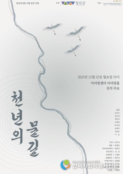 한국사회적경제신문 기자 | (재)정선아리랑문화재단은 정선아리랑 창작 희곡 공모전에서 대상을 수상한 김수미 작가의 ‘천년의 물길’ 공연이 오는 12월 22일 19:00 아리랑센터에서 아리랑홀에서 열린다.