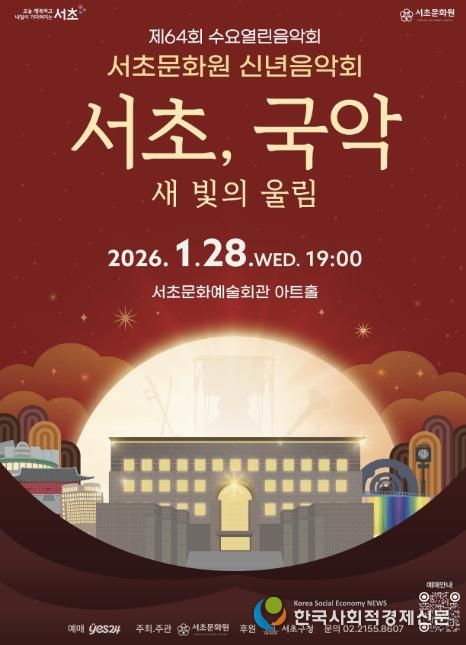 특히 △김덕수패 사물놀이 △소리꾼 남상일 △국악밴드 AUX 등 다양한 아티스트들이 한 무대에 올라 장르를 넘나드는 역동적인 퍼포먼스를 펼칠 예정이다. 구명숙 서초문화원장은 “국악을 통해 새해의 희망과 공동체의 에너지를 나누는 품격 있는 자리가 될 것”이라고 기대를 전했다.