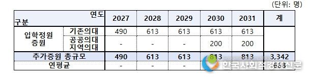 27년 490명, 28년부터 29년까지 613명, 2030년 이후 813명 단계적 증원