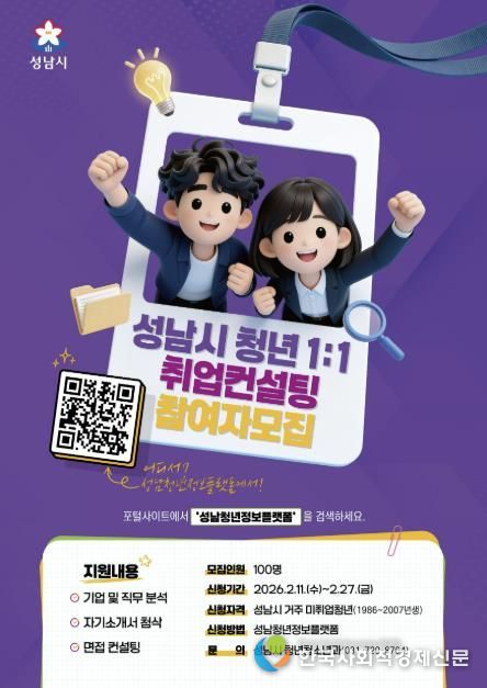 성남시 관계자는 “이번 1대1 취업 컨설팅을 통해 청년들의 취업 역량과 자신감을 높여 실질적인 구직 성과로 이어지길 기대한다”고 말했다.