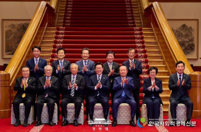 한국사회적경제신문 claire-shin 기자 | 이재명 대통령은 오늘 청와대 본관에서 1시간 45분 동안 민주당 상임고문 열 분과 오찬 간담회를 가졌다. 참석자는 권노갑 고문과 김원기·임채정·문희상·김진표·정세균·박병석 전 국회의장, 한명숙 전 총리, 정동영 통일부 장관, 이용득 고문이다.