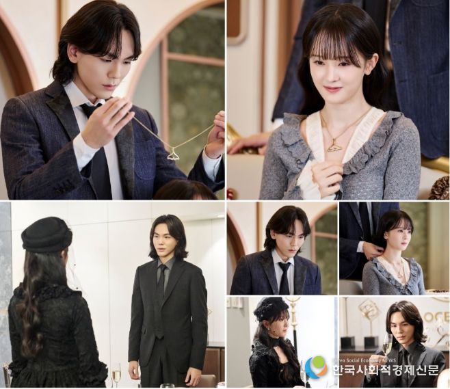 이와 관련 정이찬과 백서라가 ‘닥터신’에서 의미심장한 모티브가 되는 스파크 튀는 로맨스의 시작을 알려 이목을 집중시킨다. 극 중 신주신(정이찬 분)이 모모(백서라 분)를 고급 레스토랑으로 초대해 처음으로 대면하는 장면. 신주신은 무뚝뚝한 무표정 속에 모모를 향한 관심을 드러내고, 모모는 톱배우다운 도도함과 우아한 미소로 대응한다. 이어 신주신이 모모에게 직접 목걸이를 걸어주며 거침없는 직진 애정을 표현하고 모모는 자신의 목에 걸린 목걸이를 매만지며 환한 웃음으로 화답한다. 두 사람의 모습이 설렘을 유발한 가운데 두 사람의 운명이 궁금증을 높인다.