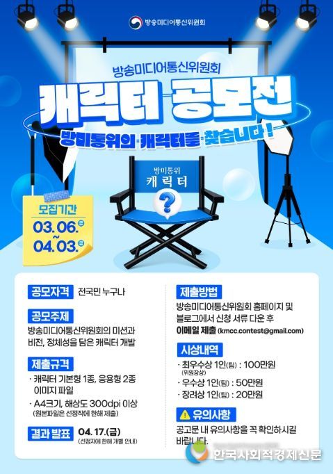 미디어 주권자인 국민 참여를 통해 위원회 미션과 비전, 상징성을 담아내며 활용성을 갖춘 캐릭터 디자인과 이름이 공모된다.
