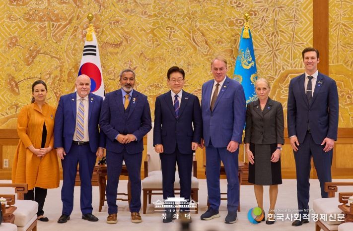 한국사회적경제신문 claire-shin 기자 | 이재명 대통령은 3월 31일 오후 청와대에서 아미 베라(Ami Bera) 하원 동아태소위원회 간사 등 공화·민주 양당 의원으로 구성된 미국 의회 코리아스터디그룹 대표단을 접견하고 최근 중동 전쟁, 한미관계, 한반도 문제 등에 대해 의견을 나눴다.
