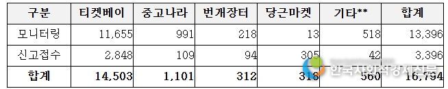 2026년 2월부터 3월까지 프로야구 암표 신고·모니터링 결과, 약 1만 6천여 건이 확인됐다. 특히 개막전(3. 28.~29.) 전후로는 정가 대비 최대 약 13배 고액 거래, 동일 계정 다량 좌석 확보 및 재판매 등 조직적 거래 정황이 다수 확인됐다. 이 중 다량·연석 판매, 과도한 웃돈 거래, 동일 계정 반복 거래 등 부정거래 의심 사례를 분석․파악해 경찰청에 수사를 의뢰했다.