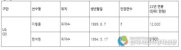 승인된 선수는 LG 이형종, 한석현으로 총 2명이다.