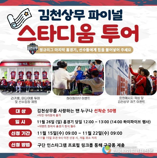 한국 사회적경제신문 김은영 기자 | 김천상무가 정규리그 마지막 홈경기에서 진행하는 스타디움 투어 참여자를 모집한다.