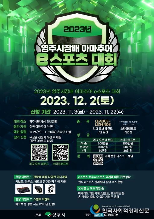한국 사회적경제신문 김은영 기자 | 영주시는 12월 2일, 선비세상 컨벤션홀에서 ‘2023 영주시장배 아마추어 e스포츠대회’를 개최한다.