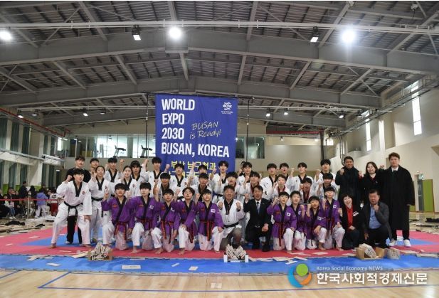 또한, 초등학생부터 중학생까지 남구의 태권도 꿈나무들이 송판 격파 등 약 15분간 멋진 시범 경연을 펼쳤으며, 2030세계박람회 유치를 응원하는 현수막 퍼포먼스로 마무리하며 K-스포츠의 위상을 한껏 뽐냈다.