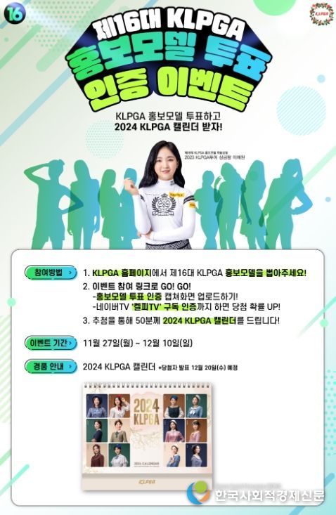 한편, ‘2024 제16대 KLPGA 홍보모델’ 온라인 투표와 더불어 같은 기간 ‘투표 인증 이벤트’도 함께 진행한다.