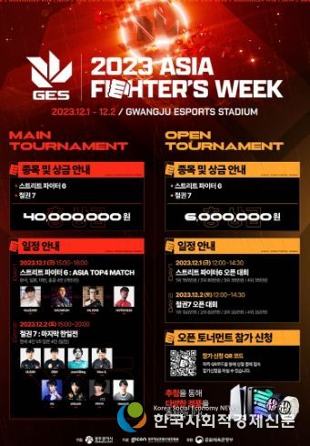 광주시가 주최하고 광주정보문화산업진흥원이 주관하는 이번 대회는 인기 격투게임을 주제로 하는 ‘파이터즈 위크(FIGHTER’S WEEK)’ 형태로 치러진다. 12월1일에는 ‘스트리트파이터6’ 종목이, 2일에는 ‘철권7’ 종목이 진행된다.