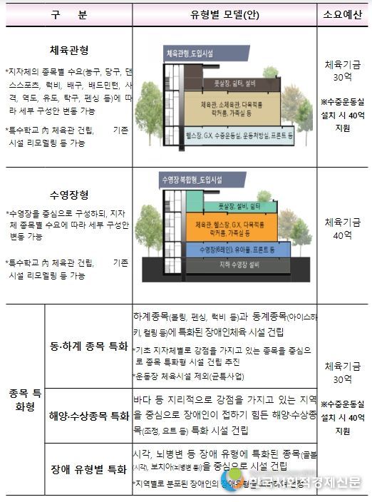 한국 사회적경제신문 김은영 기자 | 문화체육관광부는 12월 21일부터 24년 1월 26일까지 기초(광역)자치단체를 대상으로 ‘2024년 생활밀착형(장애인형) 국민체육센터(반다비체육센터) 건립 사업’을 추가 공모한다.