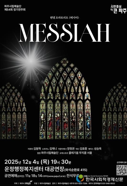 한국사회적경제신문 기자 | 파주시는 오는 12월 4일 19시 30분, 운정행복센터 대공연장에서 시립예술단 제54회 정기연주회 ‘헨델 오라토리오 '메시아'’를 선보인다고 밝혔다.