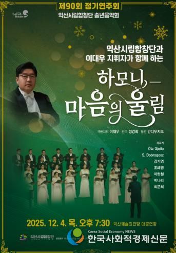 익산시립합창단은 12월 4일 오후 7시 30분, 제90회 정기연주회 '하모니-마음의 울림'을 익산예술의전당 대공연장 무대에 올린다.
