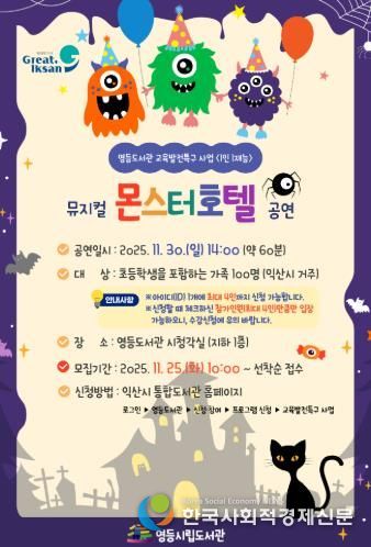 한국사회적경제신문 기자 | 익산시는 오는 30일 오후 2시 영등도서관에서 어린이 뮤지컬 '몬스터 호텔'을 선보인다.