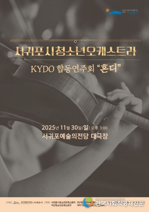 한국사회적경제신문 기자 | 서귀포시는 11월 30일 오후 3시 서귀포예술의전당 대극장에서 서귀포시청소년오케스트라 2025 KYDO 합동연주회 ‘혼디’를 개최한다고 밝혔다.