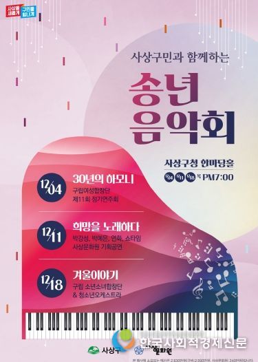 한국사회적경제신문 기자 | 사상구는 2025년 연말을 맞아 구민과 함께하는 문화축제의 장‘사상구민과 함께하는 송년음악회’를 개최한다.