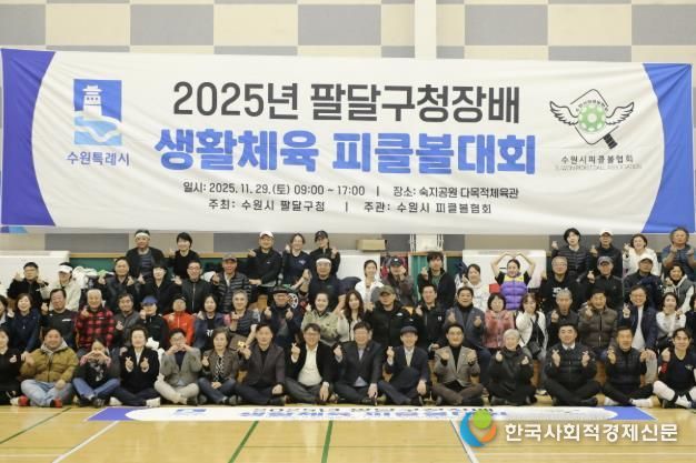한국사회적경제신문 기자 | 수원시 팔달구는 지난 29일, 숙지공원 다목적체육관에서 2025년 팔달구청장배 생활체육 피클볼대회를 성황리에 개최했다. 이번 대회에는 16개 클럽 160명과 수원시 피클볼협회 임원 관계자를 비롯한 여러 내빈들을 포함한 총 220여명이 참가하여 서로를 격려하고 응원하는 시간을 가졌다.