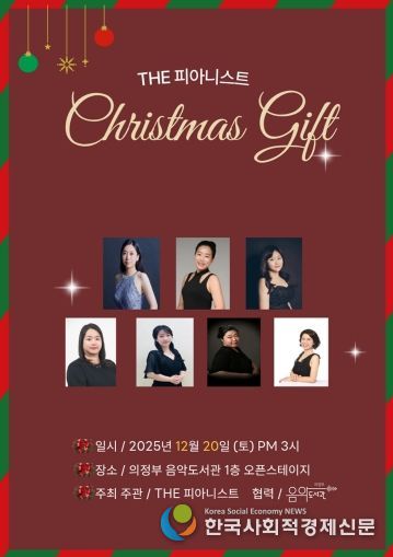 한국사회적경제신문 기자 | 의정부음악도서관은 12월 20일 오후 3시, 1층 오픈스테이지에서 ‘The 피아니스트 크리스마스 선물’ 공연을 개최한다.