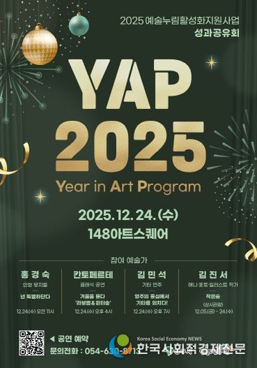 한국사회적경제신문 기자 | (재)영주문화관광재단은 오는 12월 24일 148아트스퀘어에서 크리스마스 컨셉의 ‘2025 예술누림활성화 지원사업 성과공유회 'YAP 2025'’를 개최할 예정이다.