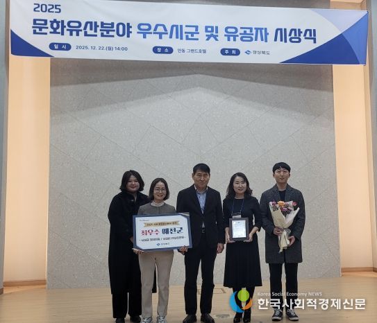 한국사회적경제신문 기자 | 예천군은 22일 안동 그랜드호텔에서 열린 경북도 주관 ‘2025년 시군 문화유산분야 평가’에서 최우수상을 수상하는 쾌거를 이루었다. 지난 2023년 최우수상, 2024년 특별상에 이어 2025년 최우수상까지 3년 연속 수상으로 문화유산 보존·관리·활용 분야에서 높이 평가받고 있다.
