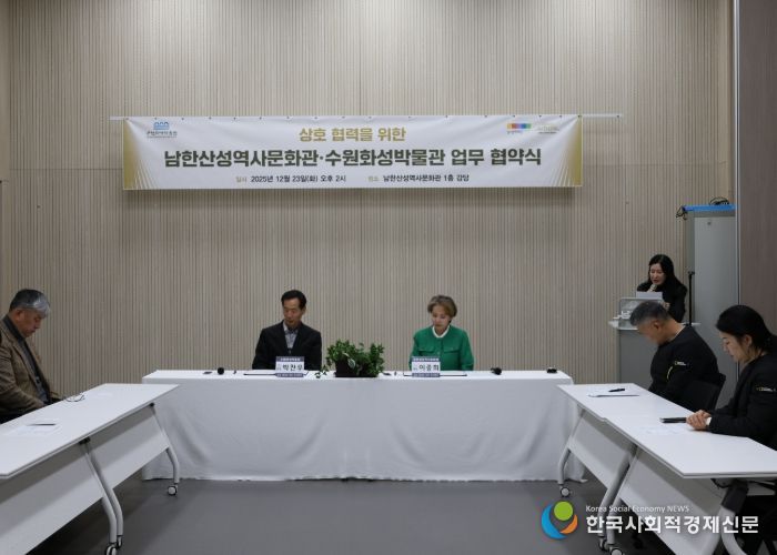 한국사회적경제신문 기자 | 남한산성역사문화관과 수원화성박물관은 2025년 12월 23일, 남한산성역사문화관에서 세계유산 성곽의 연구·보존·활용을 위한 업무협약(MOU)을 체결했다.