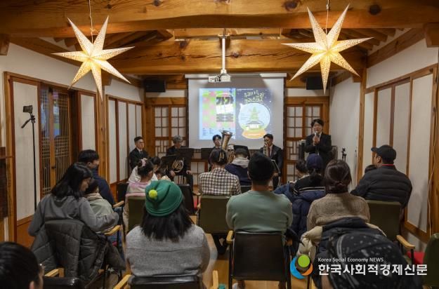 한옥숙박체험관 마당과 한옥11동에서는 캐럴 등 공연이 열려 겨울의 추위를 따뜻하게 채웠다. 20일에는 지역에서 활동하는 ‘모담어린이국악합창단’, 지역 내 아마추어 합주단 ‘포디움 윈드오케스트라’, 전문공연단체‘The울림’의 앙상블 무대가 열렸고, 21일에는 보듬우리협동조합의 클라리넷 독주가 열려 발달장애인과 비장애인이 음악으로 하나 되며 연말의 감동을 전했다.