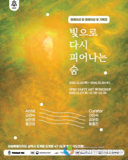한국사회적경제신문 기자 | 삼척시와 삼척관광문화재단은 도계읍 흥전 삭도마을에 새롭게 조성된 ‘작은미술관 앤드’의 신규 전시로, 큐레이션 미×큐레이션 유 소통 기획전 '빛으로 다시 피어나는 숨'을 12월 23일부터 2026년 2월 28일까지 선보인다.