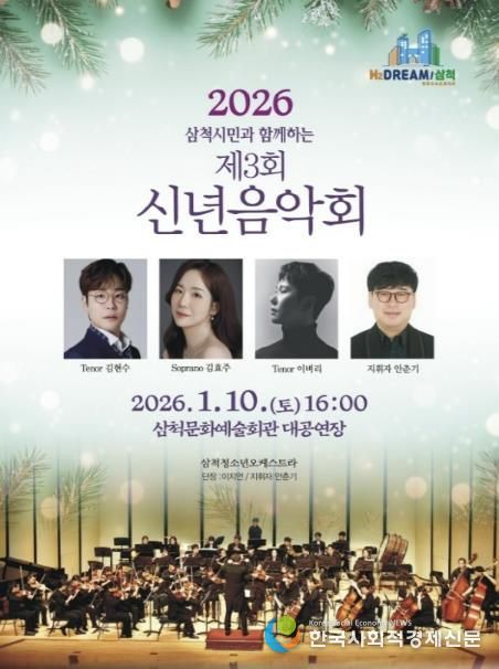 한국사회적경제신문 기자 | 삼척시는 새해를 맞아 시민과 함께 문화로 희망을 나누는 '2026 삼척시민과 함께하는 제3회 신년음악회'를 오는 1월 10일 오후 4시, 삼척문화예술회관 대공연장에서 개최한다.