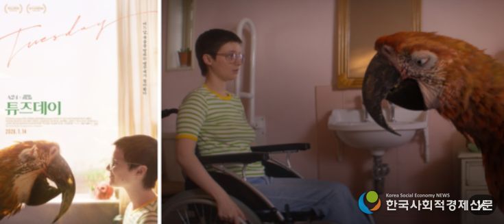 먼저 삶과 죽음에 관한 독특한 시선을 담은 영화 '튜즈데이'는 불치병에 걸린 ‘튜즈데이’와 점점 다가오는 딸의 죽음을 거부하는 엄마 ‘조라’ 앞에 모든 죽어가는 존재의 마지막 순간을 배웅하는 앵무새 ‘죽음’이 나타나며 벌어지는 A24 X BBC FILM의 독특한 휴먼 감동 판타지이다.