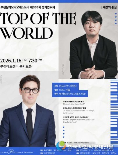 한국사회적경제신문 기자 | 부천필하모닉오케스트라가 오는 1월 16일 오후 7시 30분 부천아트센터 콘서트홀에서 제333회 정기연주회 신년음악회 ‘Top of the World’를 개최한다. 이번 공연은 새로운 한 해의 출발점에서 ‘정상’과 ‘도약’을 주제로 슈트라우스 2세의 〈황제 왈츠〉, 베토벤 〈피아노 협주곡 제5번 ‘황제’〉, 드보르작 〈교향곡 제9번 ‘신세계로부터’〉를 선보이며 새해의 기운을 밝힌다. 무대에는 상임지휘자 아드리앙 페뤼숑과 부천필, 협연자로는 피아니스트 선율이 함께한다.