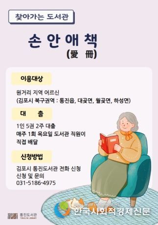 한국사회적경제신문 기자 | 김포시 통진도서관은 2026년도에도 어르신들의 안방까지 도서를 전달하는 ‘찾아가는 도서관: 손안애책(愛冊)’ 서비스를 운영한다.