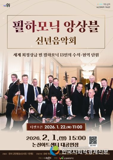 한국사회적경제신문 기자 | (재)논산문화관광재단은 오는 2월 1일 오후 3시, 논산아트센터 대공연장에서‘필하모닉 앙상블 신년음악회’를 개최한다고 전했다.
