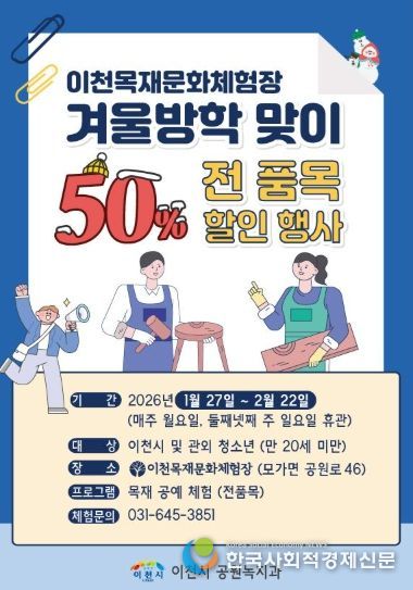 이천시 목재문화체험장 겨울방학 맞이 50% 할인행사