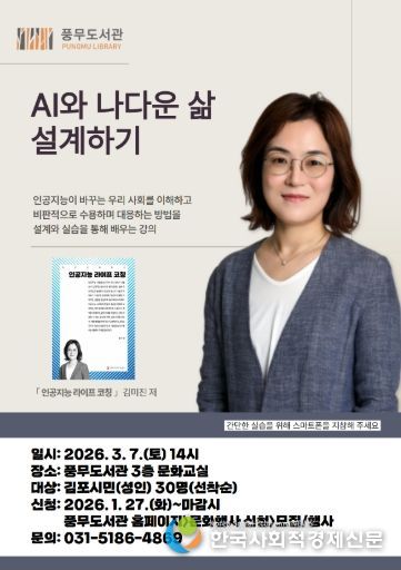 한국사회적경제신문 기자 | 김포시 풍무도서관에서는 김포시민을 대상으로 ‘AI와 나다운 삶 설계하기’를 오는 3월 7일 오후 2시부터 4시까지 운영한다.