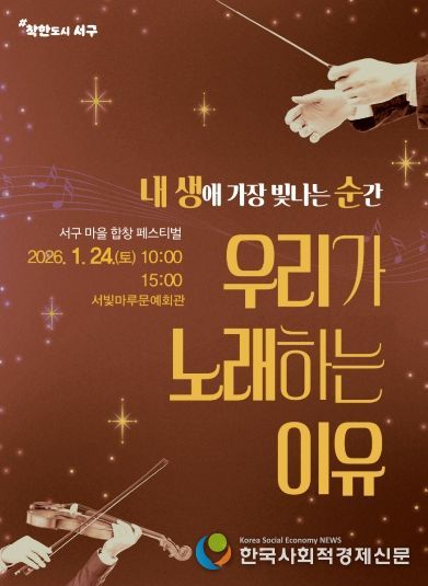 김이강 서구청장은 “주민 각자의 목소리가 어우러지며 마을이 하나 되는 힘을 만들어내고 있다”며 “앞으로도 마을마다 음악과 선율이 흐르는 풍요로운 생활문화가 자리 잡을 수 있도록 마을합창단 활동을 지속적으로 지원하겠다”고 말했다.