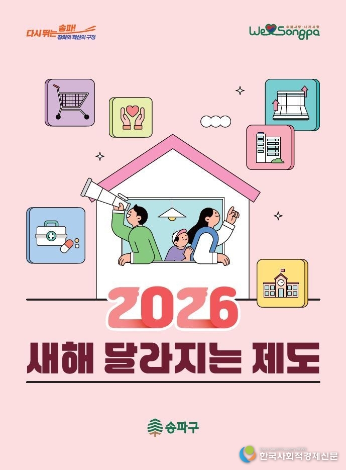 서울 송파구가 26일 구민 생활과 직결되는 정책 변화를 담은 ‘2026년 달라지는 제도’를 발표했다. 이번 제도 개편은 교육·문화, 보건·복지, 안전·환경, 행정·일반생활, 조세·금융 등 5대 분야 34개 사업으로 구성됐으며, 구민 체감도를 높이는 ‘섬김행정’에 초점을 맞췄다.