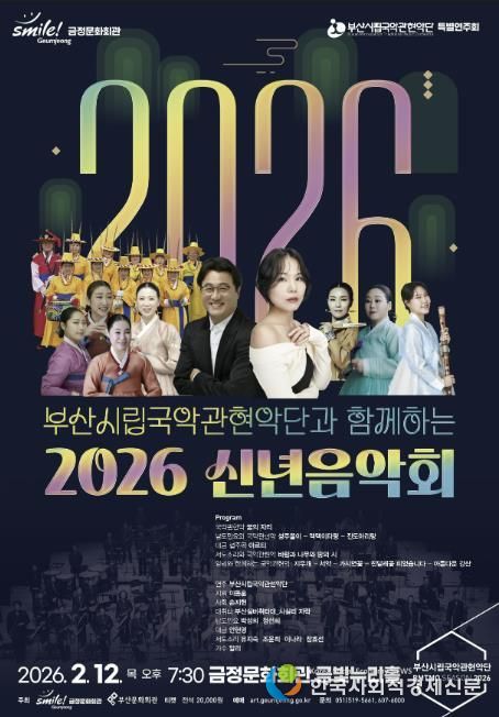 한국사회적경제신문 기자 | 금정문화회관에서는 2월 12일 오후 7시 30분, 금빛누리홀에서 부산시립국악관현악단과 함께하는 '2026 신년음악회’가 개최된다.