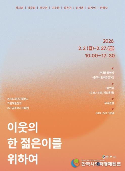 한국사회적경제신문 기자 | (재)충주문화관광재단은 오는 2월 27일까지 성내동 관아골 갤러리에서 기획전시 ‘이웃의 한 젊은이를 위하여’를 개최한다.