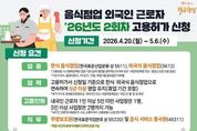 한국사회적경제신문 claire-shin 기자 | 음식점업 외국인 근로자 '26년도 2회차 고용허가 신청 ■ 신청기간: 2026.4.20.(월)~5.6.(수) ■ 신청 요건 · 업종 한식 음식점업(한국표준산업분류 상 5611), 외국식 음식점업(5612) *고용보험 시스템에 등록된 업종 기준(실제 영업을 영위하는지 여부 등은 '사업자등록증' 또는 '영업신고증'으로 증빙) *기관구내식, 출장이동식, 기타간이, 주점, 비알코올 음료점은 미허용 · 업력 고용허가서 신청일 기준으로 한식·외국식 음식점업으로 연속하여 5년 이상 영업 유지(휴업 기간 포함) *부가가치세 과세표준증명원상 과세기간 또는 사업자등록증상 '개업년·월·일'로 확인 · 고용인원 내국인 근로자 1인 이상 5인 미만 사업장은 1명, 5인 이상 사업장은 2명까지 가능 *내국인근로자(피보험자) 수는 고용부에서 고용보험시스템 전산 확인 · 직무 주방보조원(한국표준직업분류 상 95220) 및 음식 서비스 종사원(45311) *현장 여건에 맞게 직무범위 탄력적 운영 가능 · 문의 - 고용노동부 상담센터 ☎1350