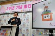 한국사회적경제신문 김인효 기자 | 박강수 마포구청장은 11월 27일 오후 4시, ‘마포 발달장애인 문화창작소(양화로 178-5)’ 개관 3주년 기념 파티에 참석해 이용인·가족·운영 관계자들과 따뜻한 축하의 시간을 가졌다. 이번 행사는 서울장애인부모연대 마포지회가 주최·주관한 것으로, 그동안 문화창작소를 이용해 온 발달장애인들의 활동 성과를 함께 나누기 위해 마련됐다. 마포 발달장애인 문화창작소는 훌라, 클라이밍, 요리 교실 등 다양한 프로그램을 운영하며 발달장애인의 생활 능력 향상과 문화 활동 참여 확대를 위해 꾸준히 노력해오고 있다. 행사는 개회 선언을 시작으로, 문화창작소가 지난 3년 동안 만들어 온 성장의 발자취를 담은 성과 영상 상영과 박강수 마포구청장의 축사, 그리고 듀엣 바이올린 축하 공연이 이어지며 잔잔한 감동과 따뜻한 응원이 흐르는 시간으로 채워졌다. 이어진 족자 및 감사장 전달식에서는 문화창작소의 운영을 위해 보이지 않는 곳에서 힘써온 지도자에게 감사의 마음을 전하며 서로를 격려하는 뜻깊은 순간이 마련됐다. 마지막으로 3주년을 기념하는 떡케이크 커팅이 진행되자 현장에는