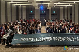 한국사회적경제신문 기자 | 화성특례시는 지난 15일 푸르미르 호텔에서 중증정신질환자와 가족을 위한 가족송년회 ‘가족애(愛) 온기’ 행사를 15일 개최했다. 이번 가족송년회는 화성시정신건강복지센터 회원, 가족, 관계자들이 참여해, 정신건강 회복을 위해 노력해 온 당사자와 가족을 격려하고, 서로의 노고를 위로하며 연대의 의미를 나누기 위해 마련됐다. 행사에서는 회복지원사업부의 사업 보고, 당사자와 가족의 이야기 나눔, 회복 영상 시청, 레크레이션, 가족 노래자랑 등이 진행돼, 서로에 대한 이해를 높이고 회복 과정에서의 의미를 되새겼다. 시는 앞으로도 정신질환 당사자와 가족을 위한 회복 지원과 가족 중심 프로그램을 지속적으로 운영하며, 지역사회 기반 정신건강 지원체계를 강화해 나갈 계획이다. 곽매헌 화성시서부보건소장은 “정신질환 당사자와 가족이 지역사회 안에서 함께 회복하고 안정적으로 생활할 수 있도록 행정적 지원과 협력체계를 지속적으로 강화해 나가겠다”며 “오늘 이 자리가 한 해의 어려움을 위로하고 새해를 희망으로 맞이하는 따뜻한 시간이 되길 바란다”고 밝혔다. [뉴스출처 : 경기도 화성시]